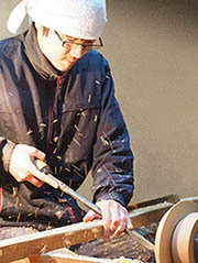 当工房では、木材から仕入れて乾燥させ、木取り、刃物づくり、ろくろ挽き、漆塗りなど、ほとんどの品はこの工程で作られます。当工房の仕事について、さらにご興味がございましたら、下記サイトをご覧ください。東京書籍さんのサイトで、先代とその仕事が紹介されています。ぜひご覧ください。