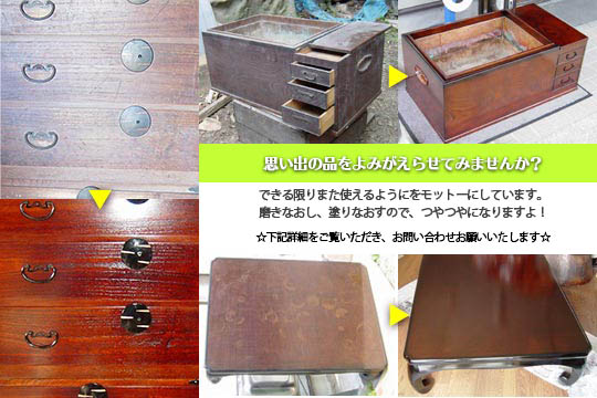 ・・・例えば、木の模様が印刷されたプラスチック×、漆器だと思っていたが、下地にウレタンが塗ってあるなど料金が加算されます。できる限り対応いたしますが、あらかじめご了承ください。